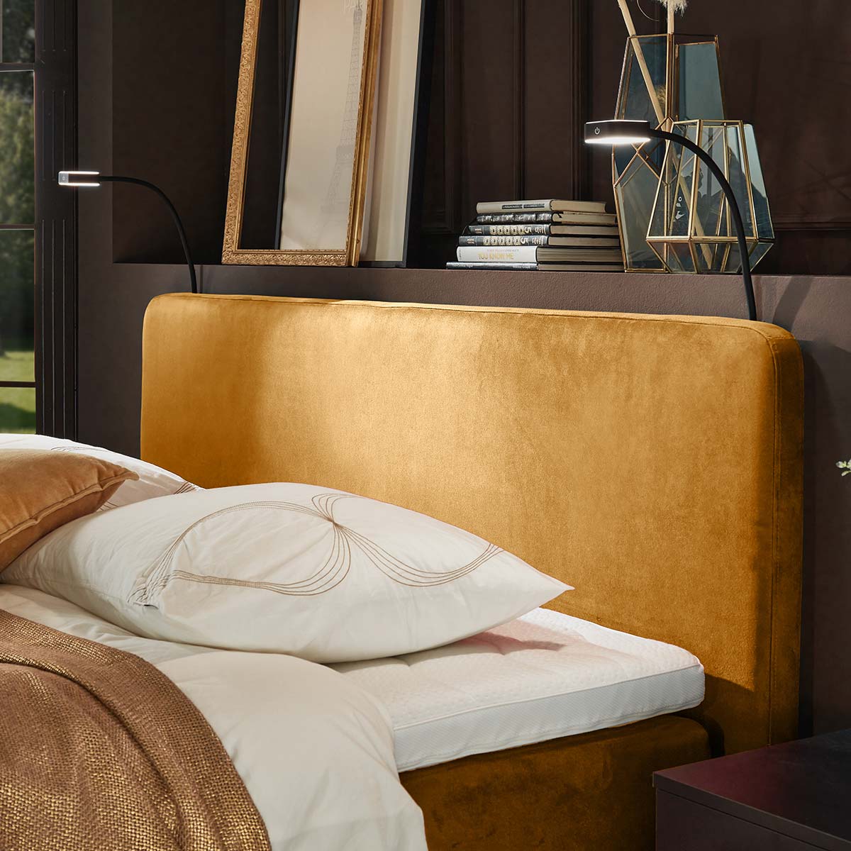 | Boxspring combinatie | Met gestoffeerd matras en topper |