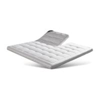 Geef je slaapcomfort een upgrade met de Caresse splittopper 820, een luxe matrastopper met een kern van anti-allergisch HR-koudschuim. Deze splittopper, met een totale dikte van 10 cm dankzij de luxueuze afdeklagen, biedt uitstekende ondersteuning en ligcomfort. De combinatie van 600 gr/m² zuivere wol en katoen zorgt voor ultieme vochtopname en ventilatie, waardoor je geniet van een fris en comfortabel slaapklimaat.