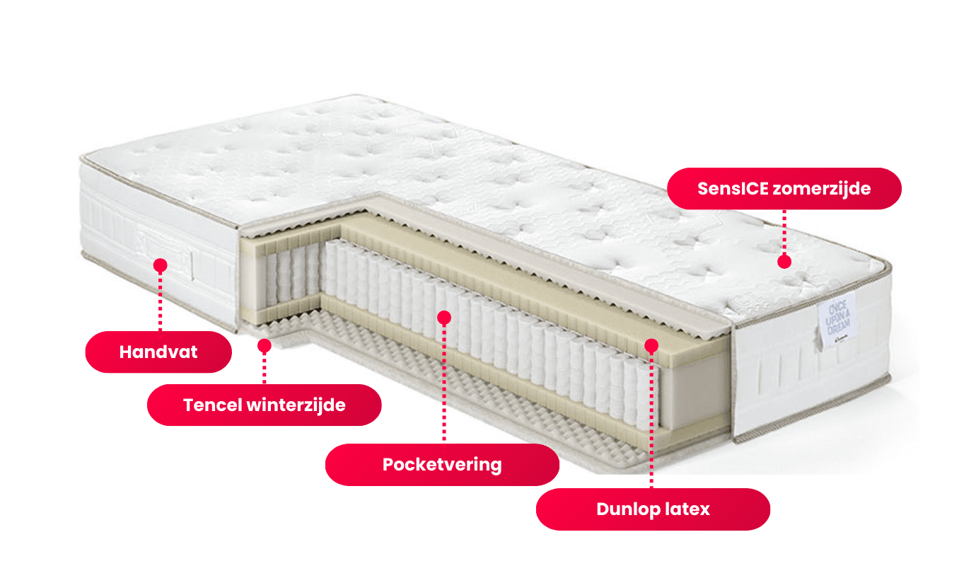 De zomerzijde van het matras is voorzien van SensICE-technologie, die zorgt voor een verkoelend effect en optimale vochtregulatie tijdens warme nachten.