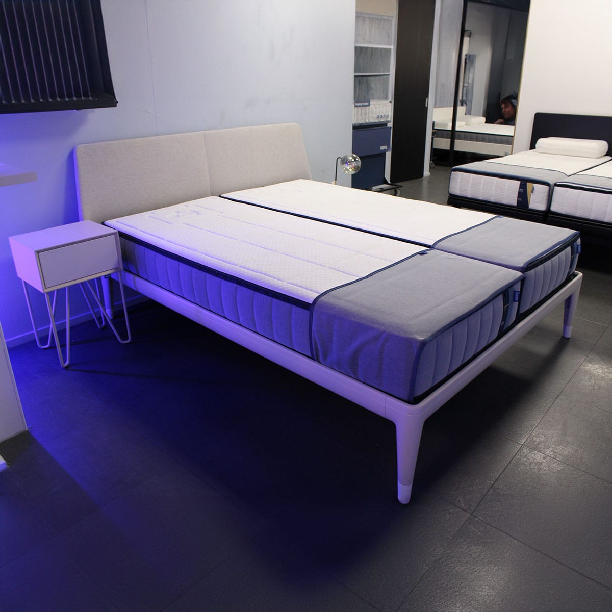 Wat de Auronde extra bijzonder maakt, is zijn doordachte functionaliteit. Het bed is verkrijgbaar als eenpersoons, tweepersoons of als populaire deelbare uitvoering. Juist die deelbare variant is enorm praktisch: je schuift het bed eenvoudig uit elkaar voor schoonmaken, verplaatsen of het opmaken van het bed. Daarbij kan de Auronde volledig naar wens worden samengesteld, met keuze uit verschillende kleuren, uitvoeringen, hoofdborden, accessoires en zelfs elektrische Smart Base opties voor extra comfort.