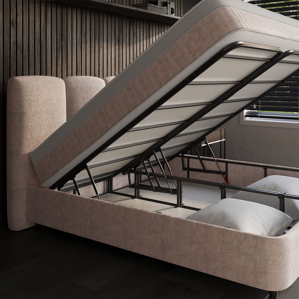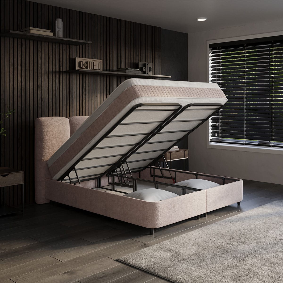 De Dreamhouse Opbergboxspring Allure combineert stijlvol design met praktische opbergruimte. Uitgevoerd in zachte Nano-stof, verkrijgbaar in Taupe en Antraciet, straalt de Allure rust en verfijning uit. Het moderne hoofdbord met zachte lijnen geeft een serene en elegante uitstraling, waardoor deze boxspring een perfecte aanvulling is voor een warme, moderne slaapkamer.