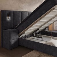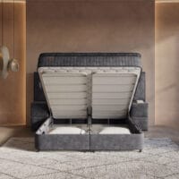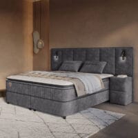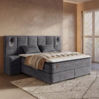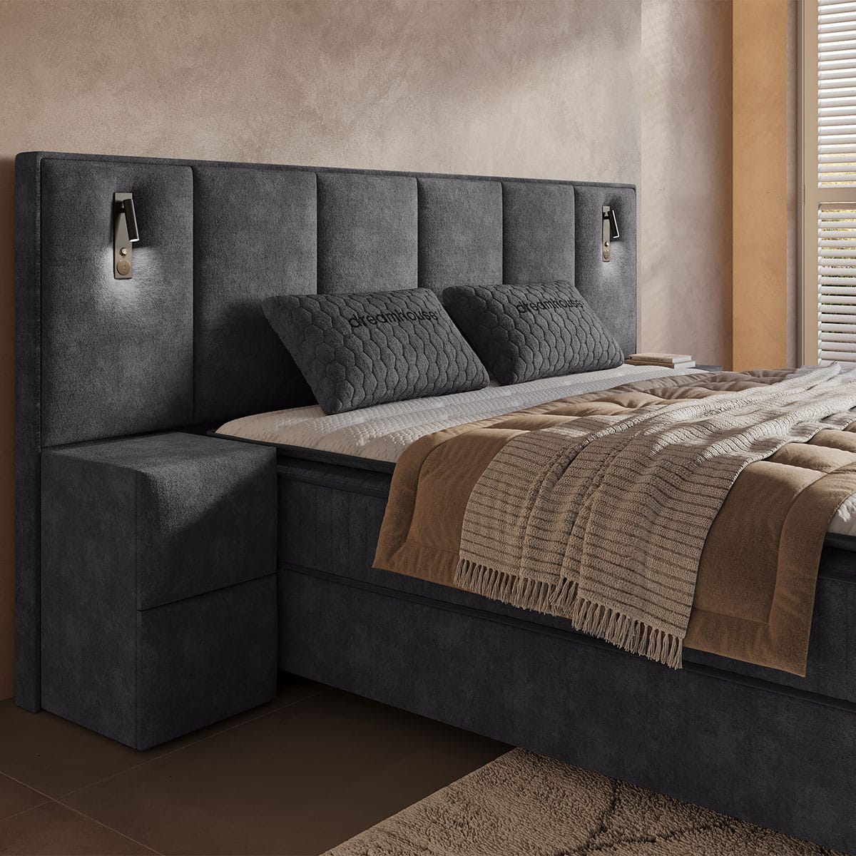De Dreamhouse Cresta XL is een moderne boxspring die hotelwaardige luxe combineert met praktische functionaliteit. De elegante symphony-stof in antraciet, het strakke hoofdbord en de ruime geïntegreerde opbergruimte maken dit bed ideaal voor wie houdt van rust, orde en stijl in de slaapkamer. De Dreamhouse Cresta XL opbergboxspring wordt geleverd inclusief 2 nachtkasten.