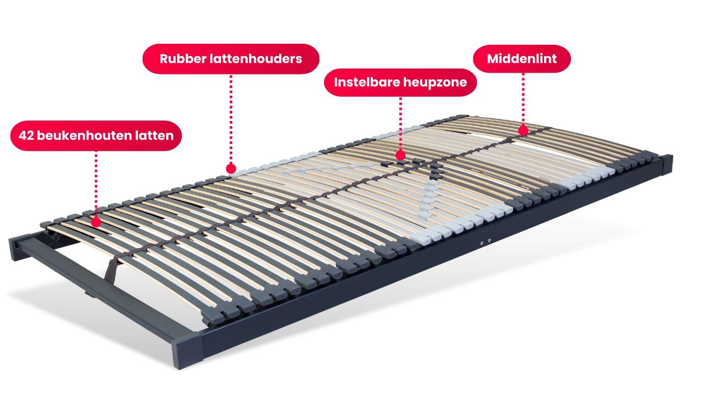 Ontdek het comfort van de HBeds 42 Prestige vlakke lattenbodem. Deze lattenbodem, geschikt voor diverse bedtypes, biedt een budgetvriendelijke oplossing voor een goede nachtrust.