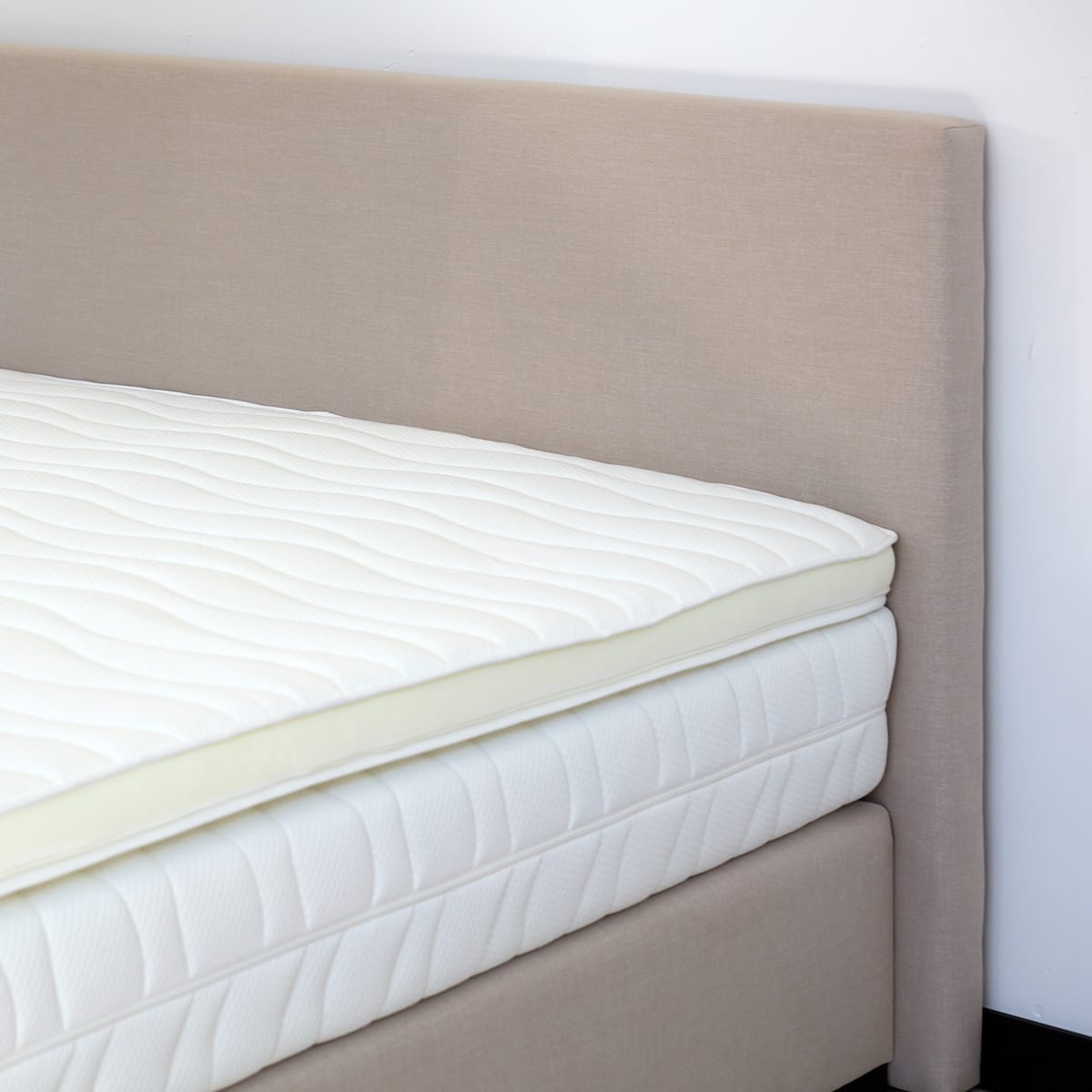 De topper maakt van de twee losse matrassen één royaal ligoppervlak, zonder voelbare kier. Dit garandeert optimaal comfort voor twee personen, terwijl het opmaken eenvoudig blijft en het geheel perfect blijft liggen – ook bij veelvuldig gebruik.