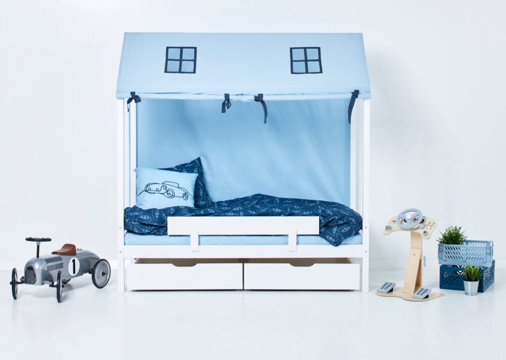 Voor kleine coureurs, taxichauffeurs en vrachtwagenchauffeurs! Het CARS bedlinnen van Hoppekids in het sterke ORION BLUE met het chique autologo als patroon is perfect voor alle kleine racertjes. Een mooi kinderbed van Hoppekids vraagt natuurlijk om het juiste bedlinnen! 100% katoen voor een gezonde nachtrust in een kinderbed.