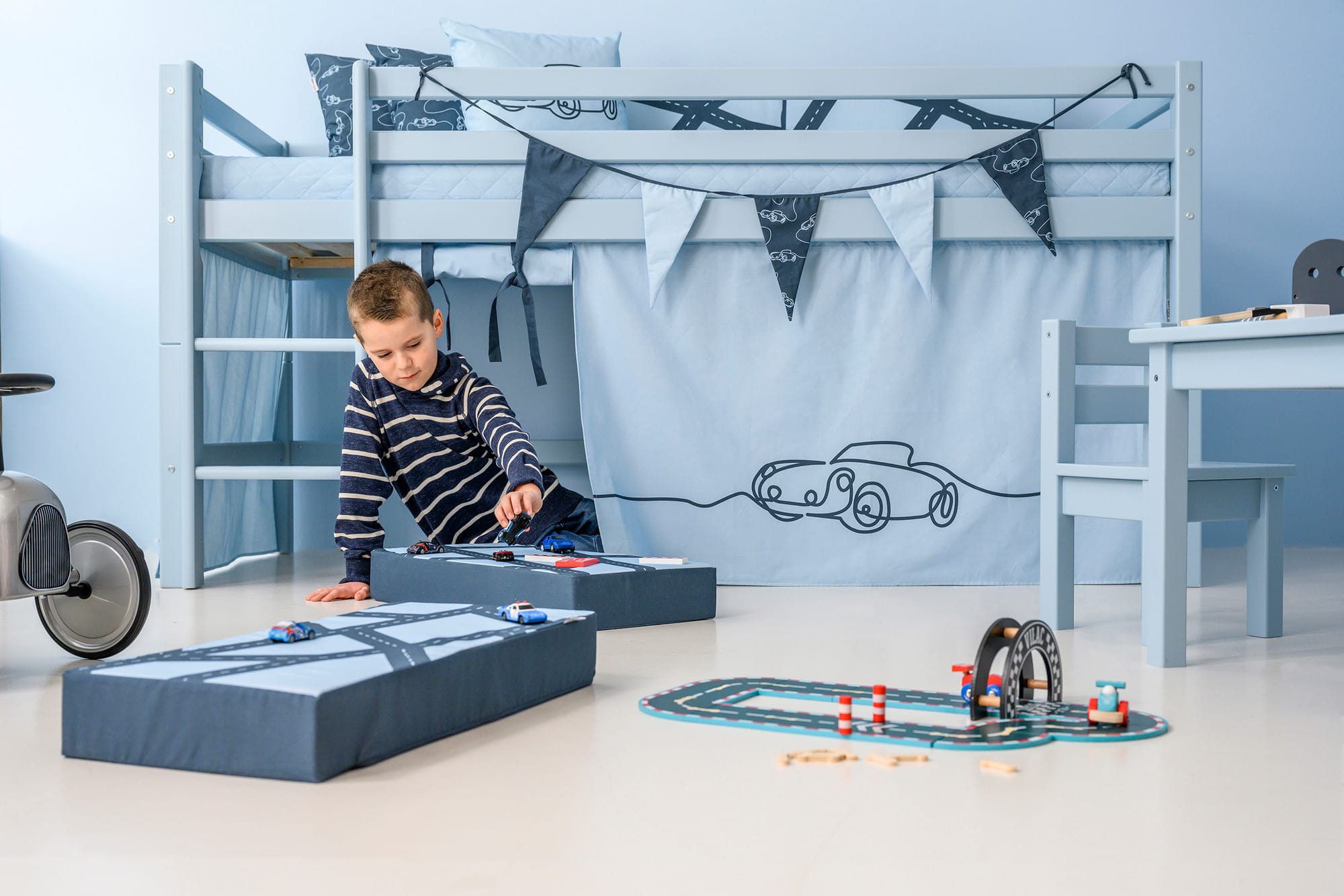 Het Hoppekids Cars bedgordijn tovert elk bed om tot een inspirerende speelplek! Of je kind nu droomt van spannende autoraces, een autogarage of een knus hoekje om te ontspannen, dit gordijn biedt eindeloze mogelijkheden. Het creëert een gezellige ruimte onder het bed waar kinderen kunnen spelen, lezen of hun eigen fantasiewereld tot leven brengen.