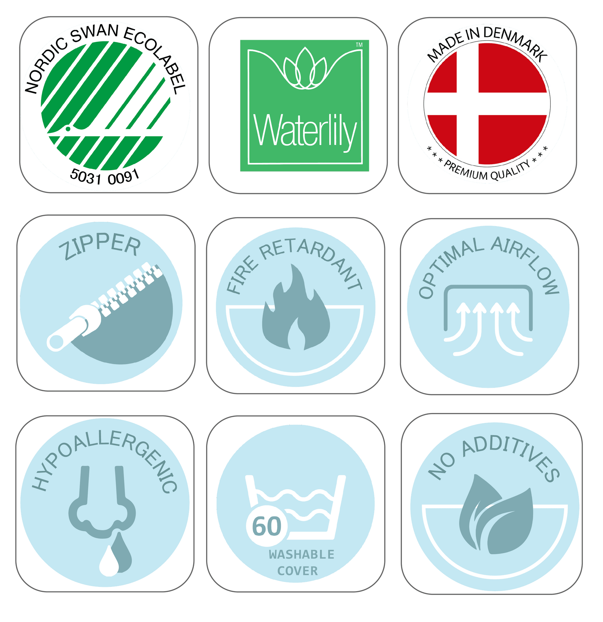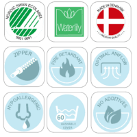 Deze matrassen dragen het Nordic Swan Ecolabel, wat betekent dat ze voldoen aan strenge normen op het gebied van milieu, gezondheid, kwaliteit en veiligheid gedurende de gehele levenscyclus van het product. Het Nordic Swan Ecolabel is een officiële, onafhankelijke certificering die haar eisen voortdurend aanscherpt om duurzame ontwikkeling te bevorderen.