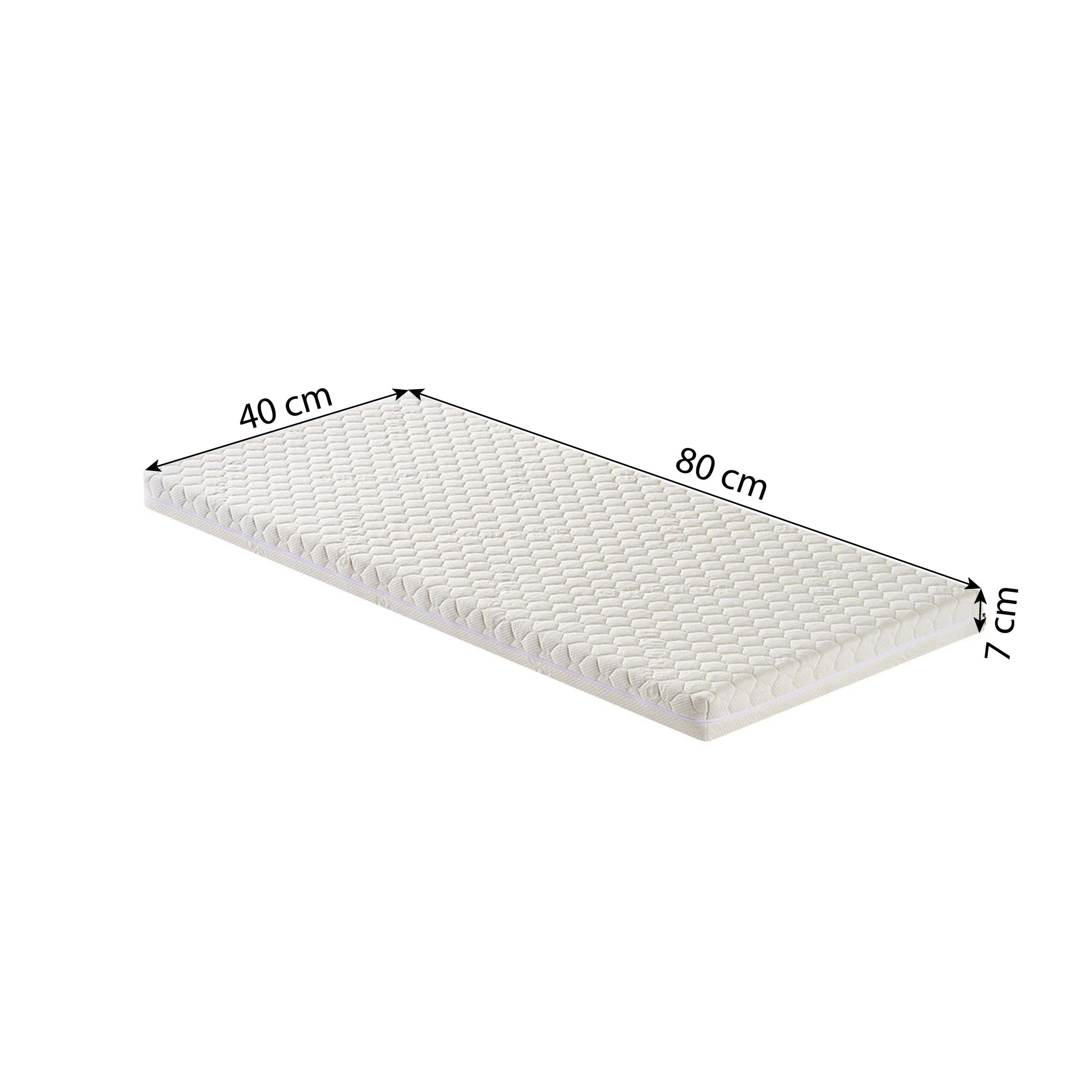 - Afmetingen matras: 40×80 cm of 60×120 cm.