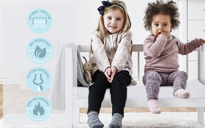 - Geschikt voor matrassen: Respectievelijk 40×80 cm en 60×120 cm.