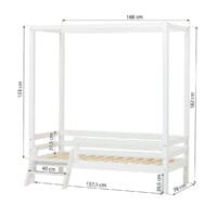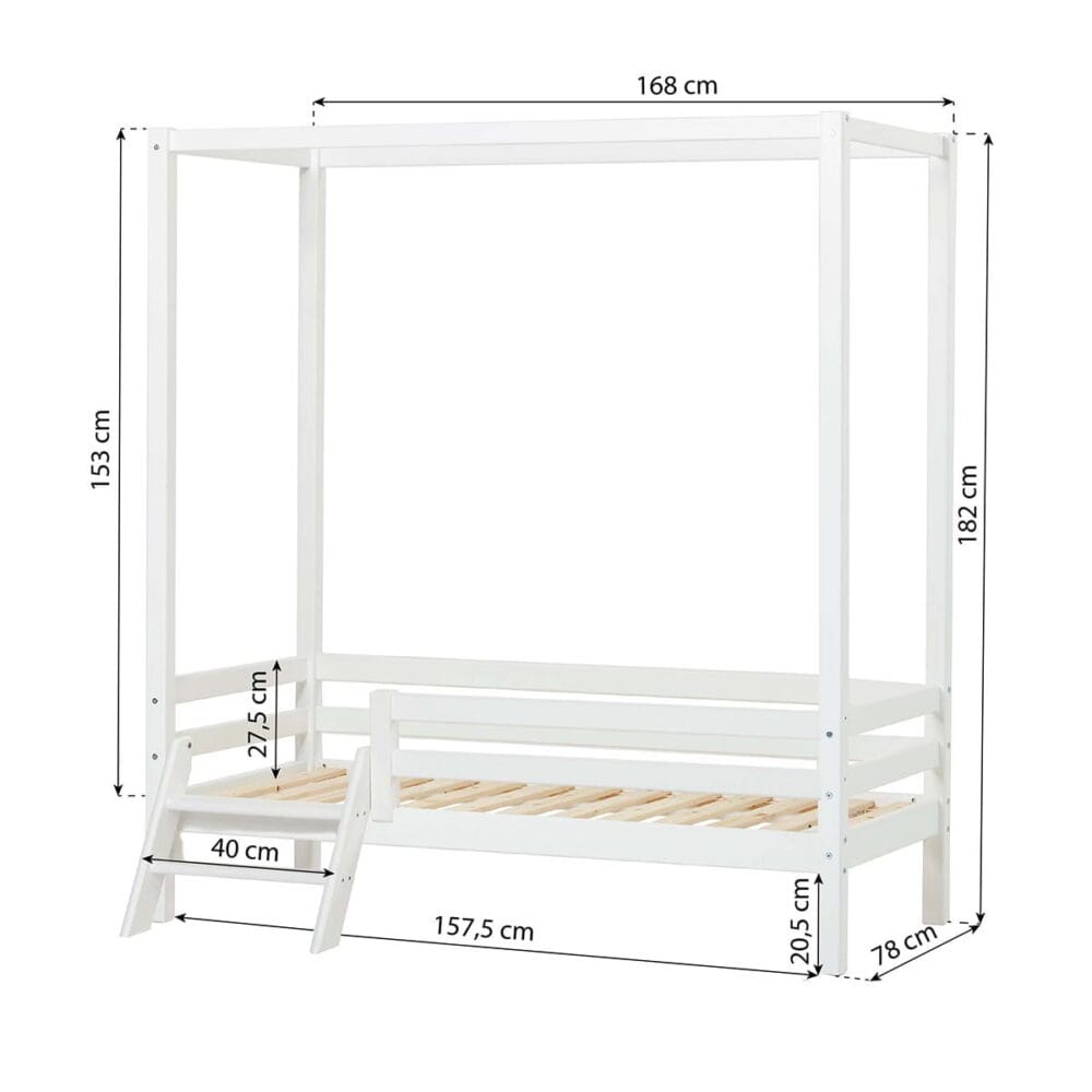 - Afmetingen hemelbed 70×160 cm: 168 x 102 x 182 cm (L x B x H).