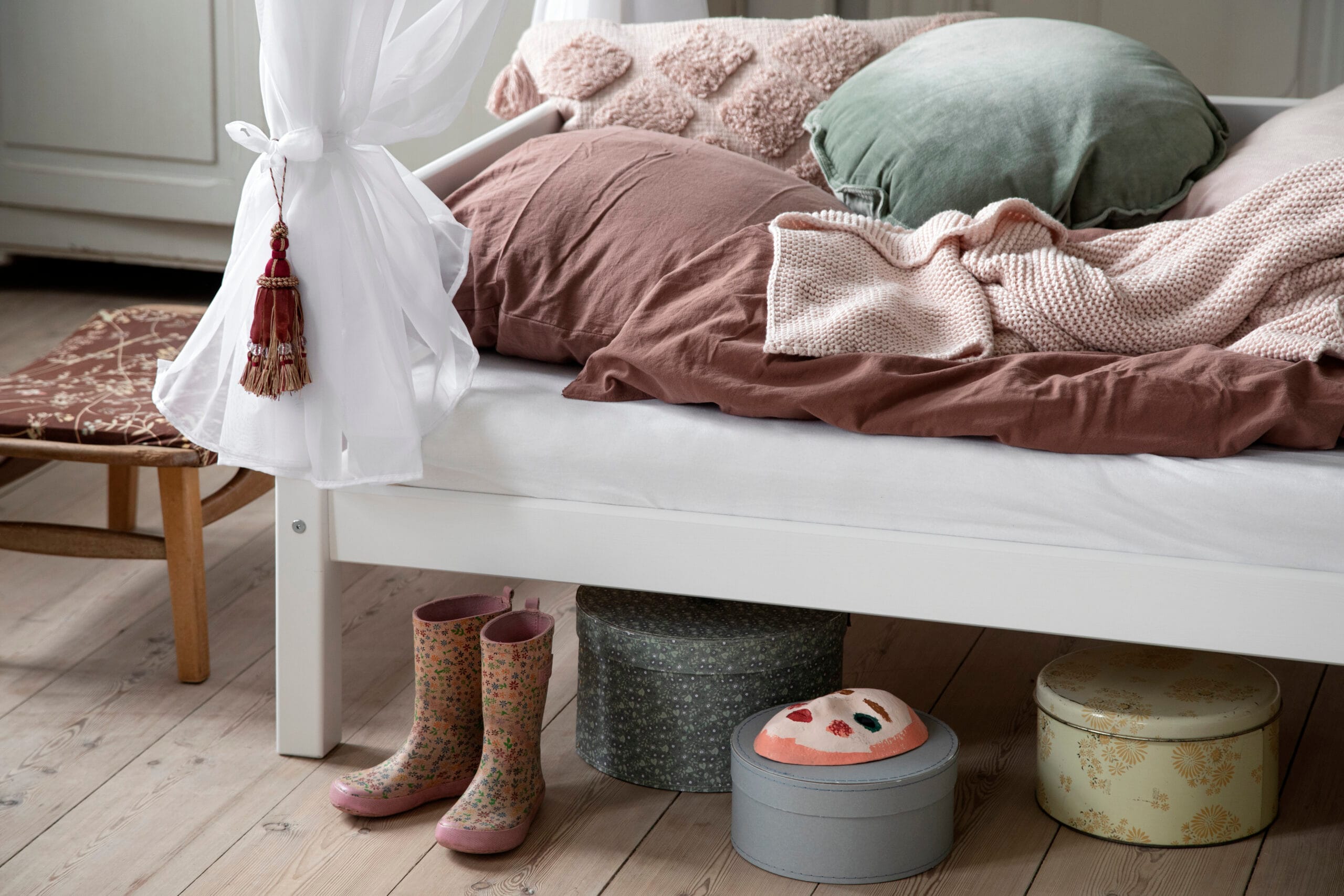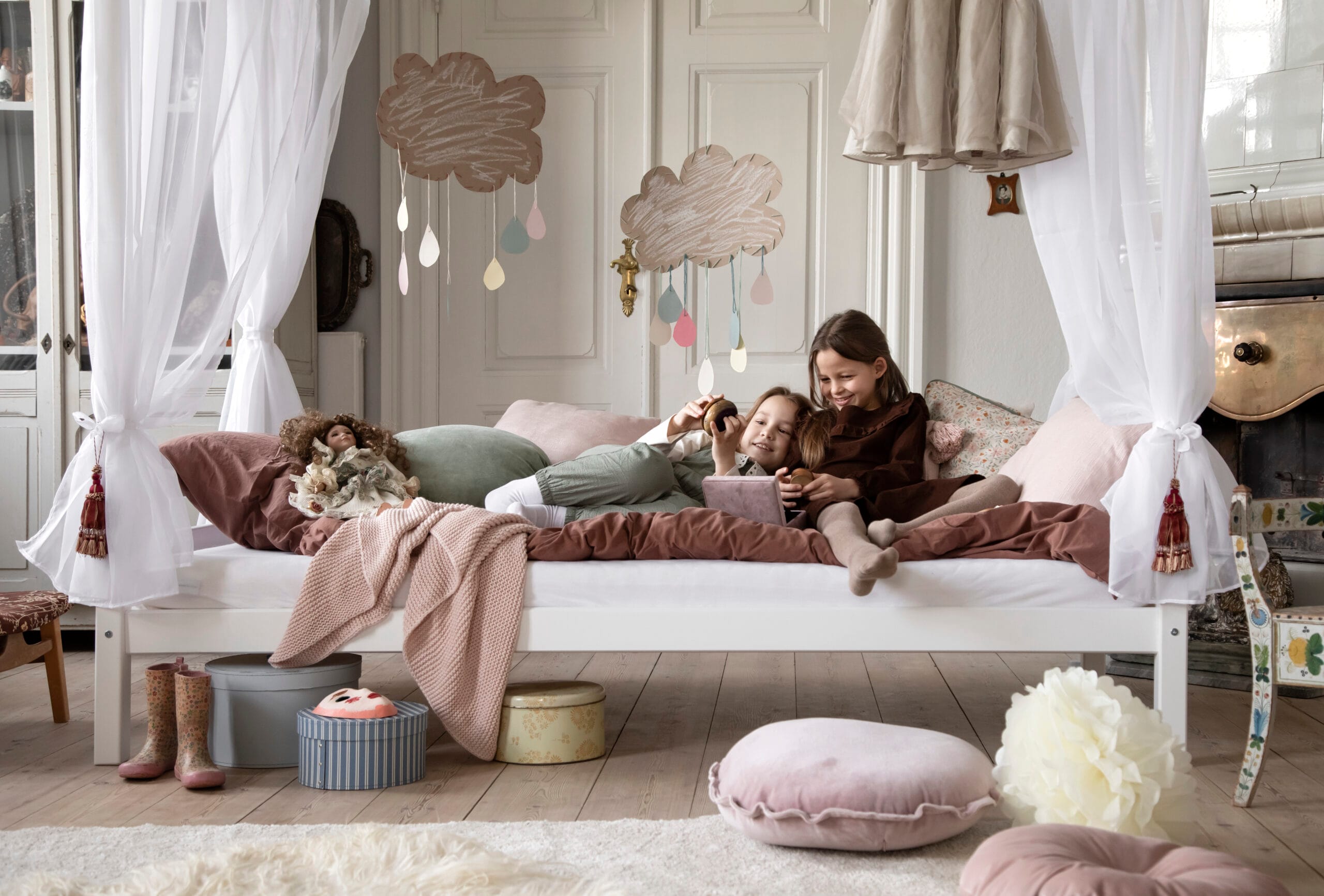 Met dit Hoppekids Hemelbed textiel creëer je eenvoudig een gezellige en veilige sfeer in de kamer en in het bed. Het gordijn zorgt voor een grotachtige sfeer in het bed zonder het bed volledig van de rest van de kamer af te sluiten. Laat het gordijn hangen of bevestig het met de touwtjes aan de hoeken voor de ultieme prinsessendroom.
