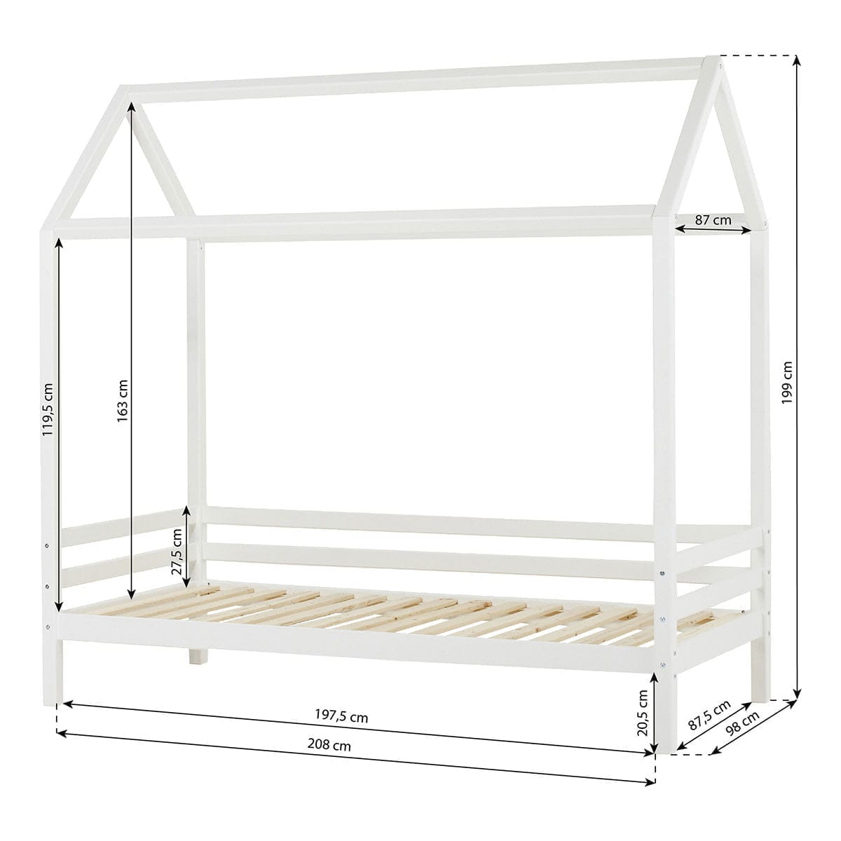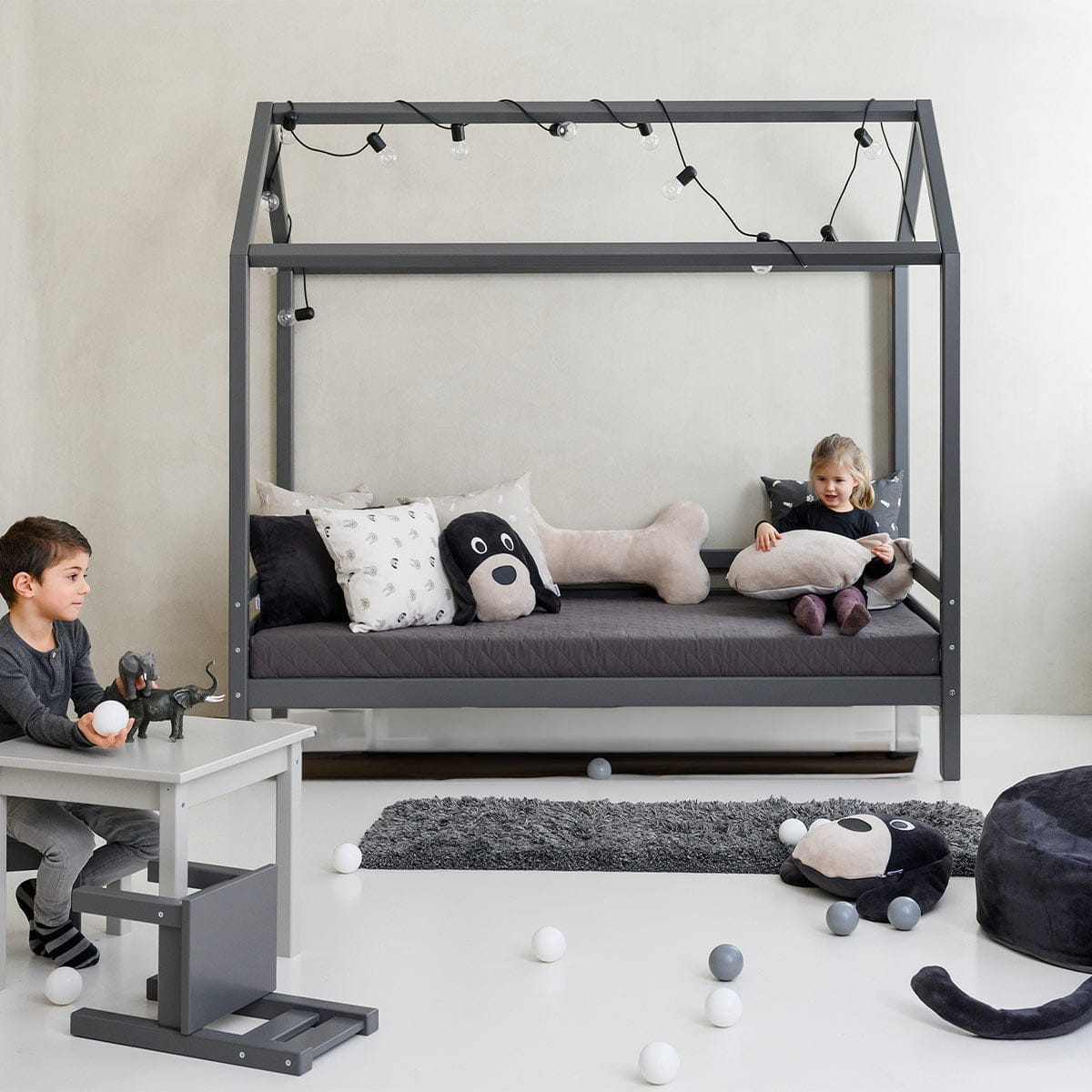 Het ECO Dream bedhuis omrand van Hoppekids is een geweldige toevoeging aan de slaapkamer van jouw kind. Gemaakt van stevig Scandinavisch dennenhout en verkrijgbaar in een moderne witte kleur en een zwarte kleur, is dit bed helemaal in de trend. De huisvormige constructie van het bed zorgt voor urenlang speelplezier voor jouw kind, en met een huisbedovertrek kun je de perfecte speel- en slaapomgeving creëren, waar ze zich kunnen terugtrekken.