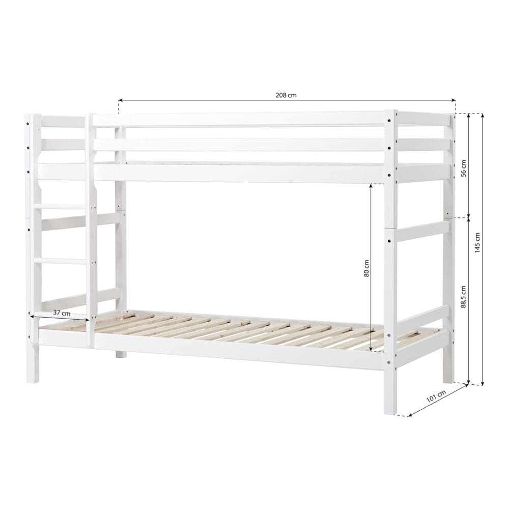 NB! Dit bevat het module, inclusief het onderste bed, lattenbodem, ladder en veiligheidsrail voor het bovenste bed. Het ECO Dream Junior bed van 90×200 cm wordt apart verkocht.