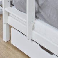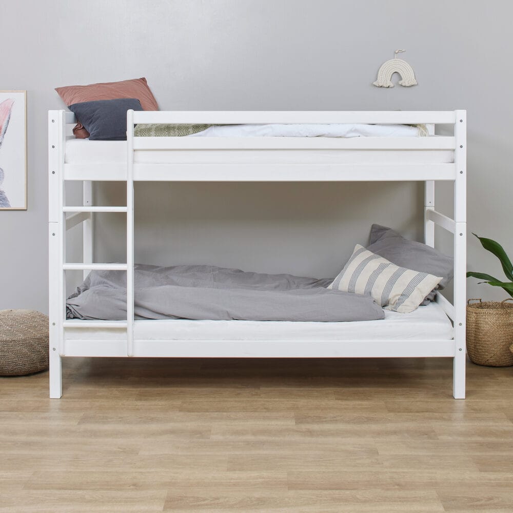 Het stapelbed is ideaal voor een gedeelde kamer of als je kind vaak logees heeft. Het onderste bed is perfect als een gezellig hol of als dagbed. Door een gordijn aan het bed te hangen, creëer je het gezelligste holletje – en je kunt het misschien nog extra versieren met sfeerverlichting, leuke plaatjes, een matras, kussens en meer.