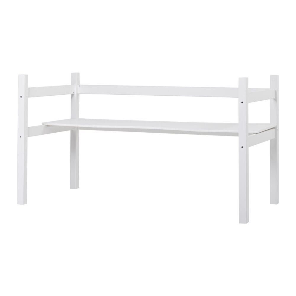 Het volledige bureau van Hoppekids biedt een praktisch en ruim werkgebied onder je hoogslaper van Hoppekids. Het bureau is net zo breed als het bed lang is, wat je de mogelijkheid geeft om meerdere “werkstations” te creëren of veel ruimte voor opslag boven of onder het bureau.