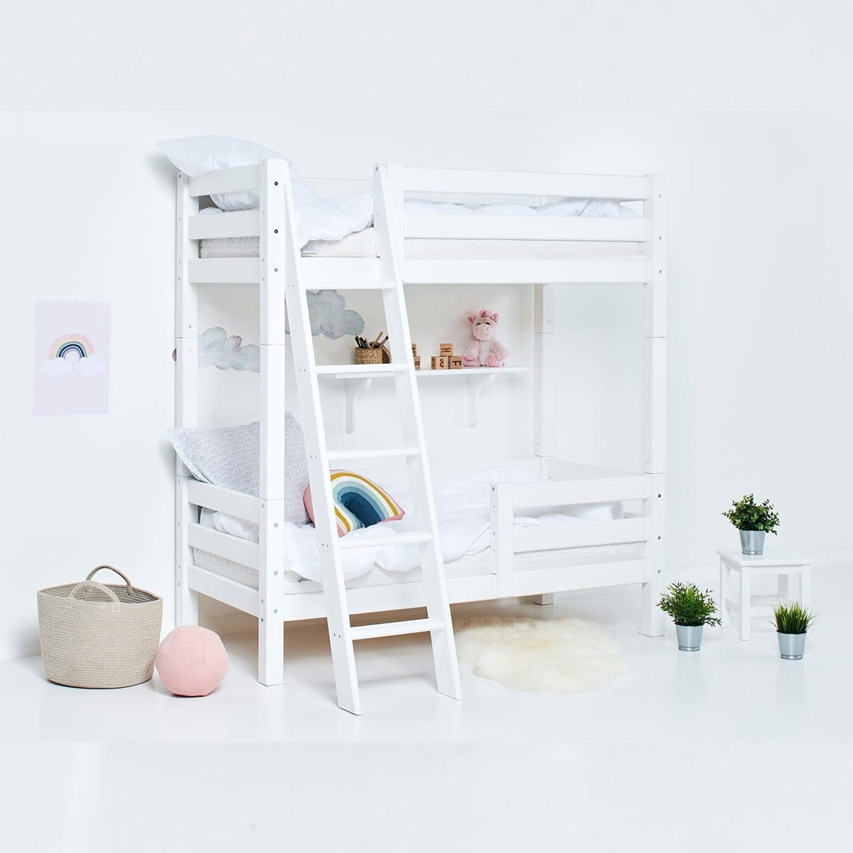 Altijd al een stapelbed willen aanschaffen voor jouw kinderen? Het Hoppekids ECO Luxury stapelbed is in 3 maten beschikbaar: 70×160 cm, 90×200 cm en 120×200 cm en hierdoor geschikt voor iedere kinderkamer. Dit model stapelbed wordt geleverd met schuine ladder en is hierdoor erg prettig te beklimmen voor jouw kind(eren). De hoogte tussen de twee bedden in is 105 centimeter en hierdoor is er genoeg ruimte om comfortabel in en uit te stappen.