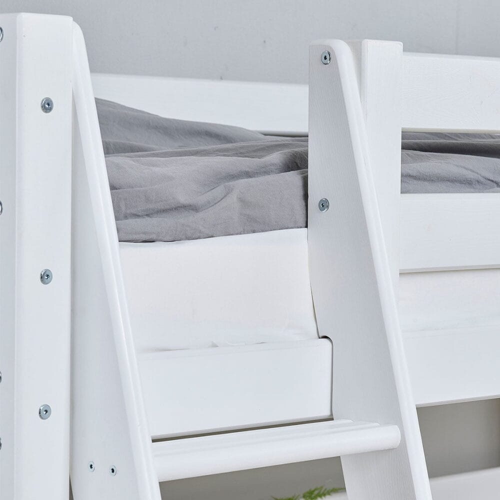 Voor degenen die voor hun kind op zoek zijn naar groeiruimte en toekomstige flexibiliteit, is onze 90×200 cm hoogslaper een uitstekende keuze. Deze ruimere maat biedt voldoende ruimte om comfortabel te groeien en zo groeit het bed mee met de behoeften van je kind, van de kinderjaren tot de tienerjaren en zelfs daarna.