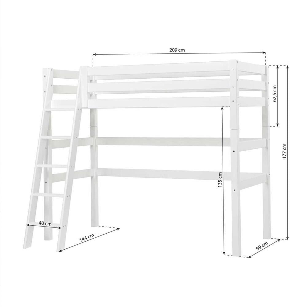 - Afmetingen hoogslaper: 209 x 144 x 177 cm (L x B x H).