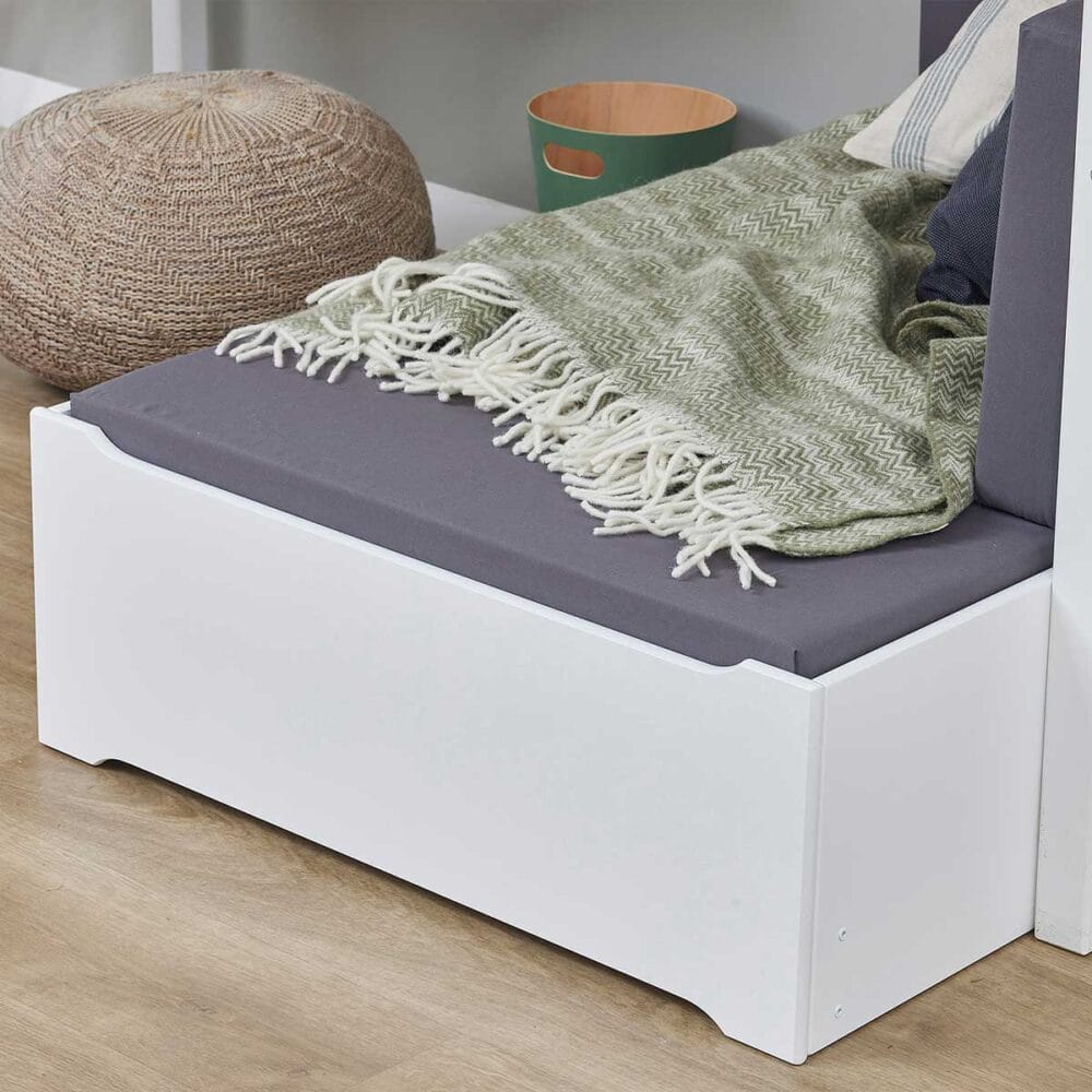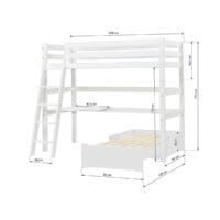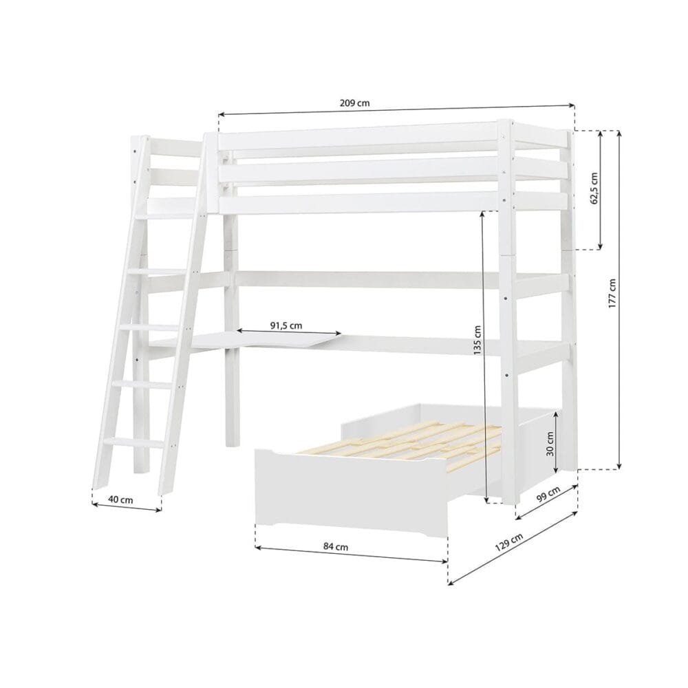 Onder het bed is er veel extra vloeroppervlak waardoor je een loungehoek, werkruimte, opslag of speelruimte kunt creëren. De afstand van de onderkant van het bed tot de vloer bedraagt 135 cm – alleen de fantasie bepaalt de grens van waarvoor u al deze ruimte kunt gebruiken!
