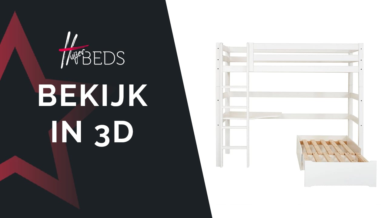 De afstand van de onderkant van het bed tot de vloer bedraagt 135 cm, en enkel je verbeelding bepaalt de mogelijkheden voor het benutten van deze ruimte. De lounge-module is een veelzijdige toevoeging, die kan dienen als zitplaats of als extra stapelbed voor gasten. Het bureaublad biedt je een gezellige en praktische werkruimte, perfect voor creatieve projecten of huiswerk.