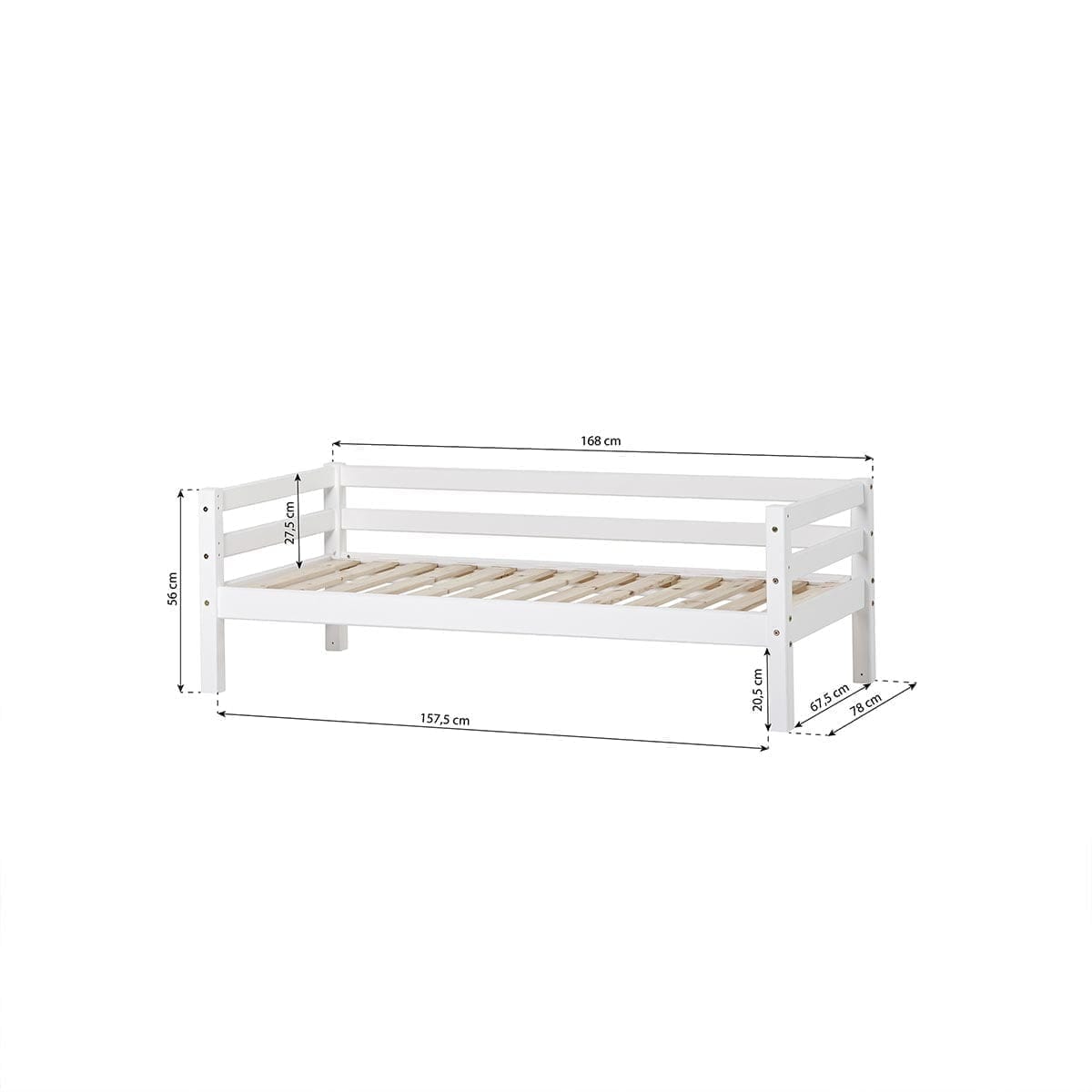 - Totale afmetingen bed 70×160 cm: Lengte: 169 cm / Hoogte: 62,5 cm / Breedte: 79 cm.