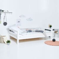 De maat 90×200 cm biedt veel ruimte om voor jouw kindje om te groeien en om het bed te gebruiken tot jouw kind een tienerleeftijd heeft bereikt. Met dit formaat kinderbed ben je ook in staat om bij je kindje in bed te kruipen om verhaaltjes voor te lezen voor het slapen gaan.