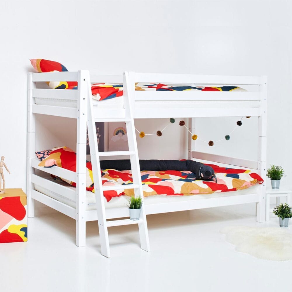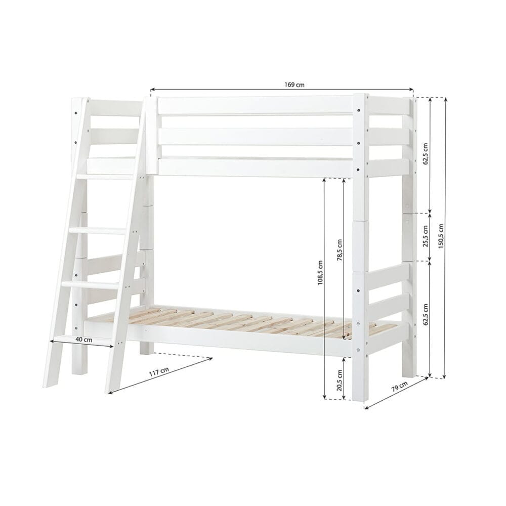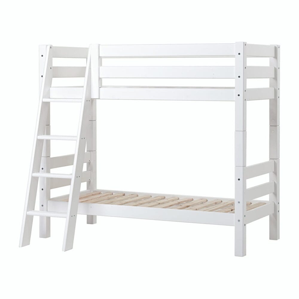Altijd al een stapelbed willen aanschaffen voor jouw kinderen? Het Hoppekids ECO Luxury stapelbed is in 3 maten beschikbaar: 70×160 cm, 90×200 cm en 120×200 cm en hierdoor geschikt voor iedere kinderkamer. Dit model stapelbed wordt geleverd met schuine ladder en is hierdoor erg prettig te beklimmen voor jouw kind(eren). De hoogte tussen de twee bedden in is 78 centimeter en hierdoor is er genoeg ruimte om comfortabel in en uit te stappen.