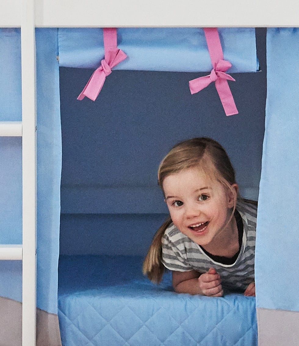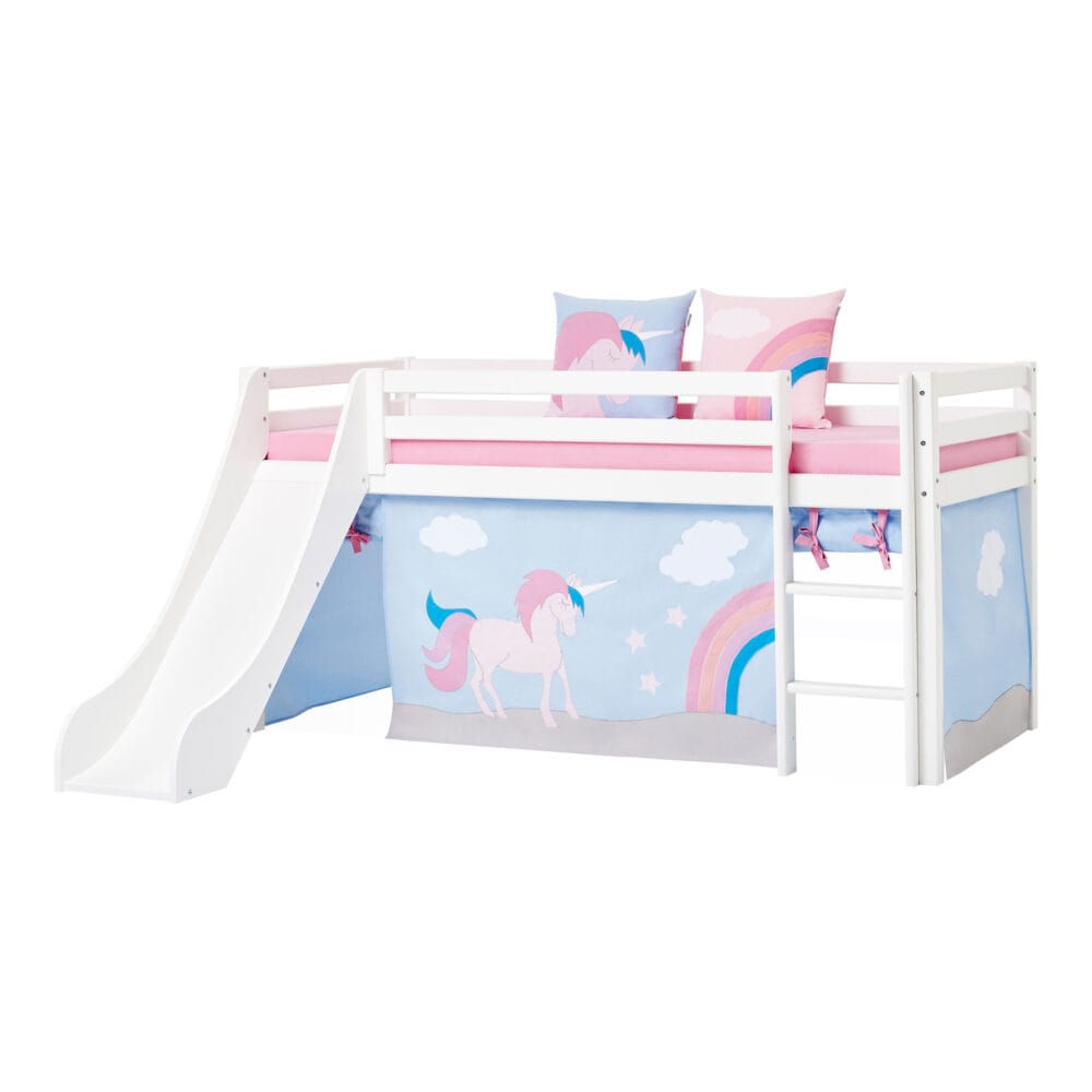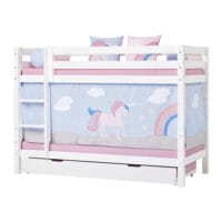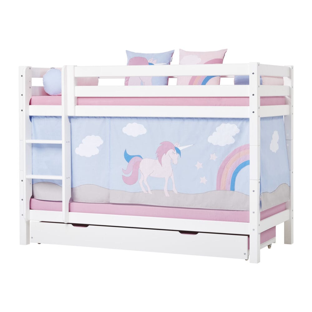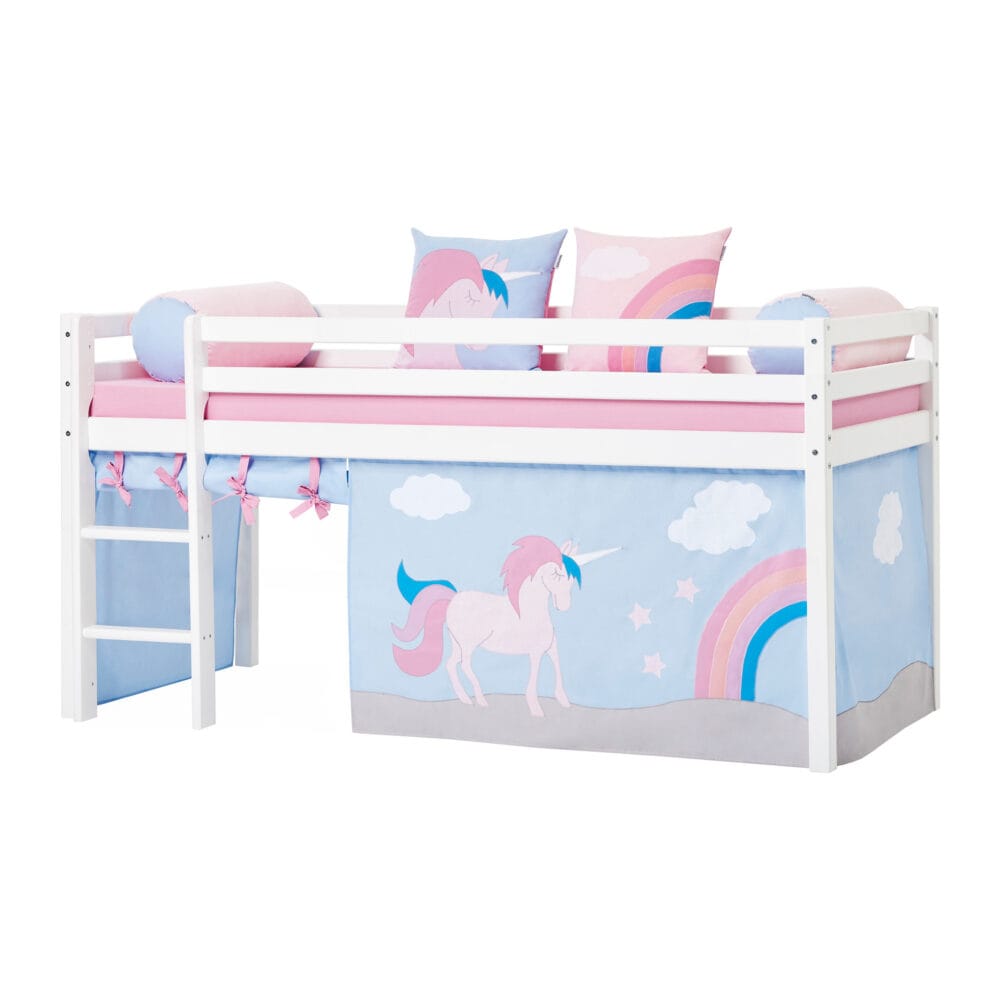 Het Hoppekids Eenhoorn bedgordijn brengt een magische sprookjeswereld tot leven in de kinderkamer! Transformeer het bed van je kind in een betoverend ruimteavontuur, een majestueus kasteel of een tijdreis door de wonderen van de fantasie. Het gordijn creëert een knusse grot onder het bed, de perfecte plek voor avontuur, spelen of lekker tot rust komen. Versier de grot met een matras, kussens, dekens en lichtslingers voor de ultieme magische sfeer.