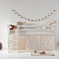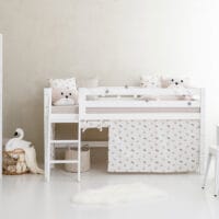 Het Hoppekids Huisdieren Beige Bedgordijn creëert een magische avontuurlijke wereld onder het bed! Het gordijn maakt van het bed niet alleen een slaapplek, maar ook het beginpunt van spannende reizen en verhalen. Het gordijn creëert een gezellige grot onder het bed, perfect voor speeltijd of wanneer je kind even een pauze nodig heeft van de buitenwereld. De hoogte onder de middelhoogslapers biedt ruimte om het gebied in te richten met matrassen, slingers, LED-verlichting, kussens en nog veel meer. Of richt een knutselplek of een studeerplek in onder het bed.