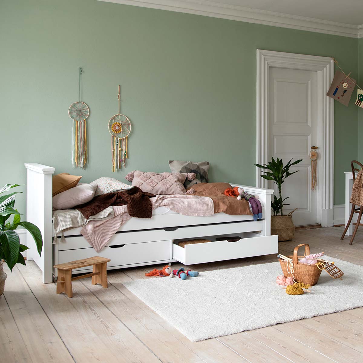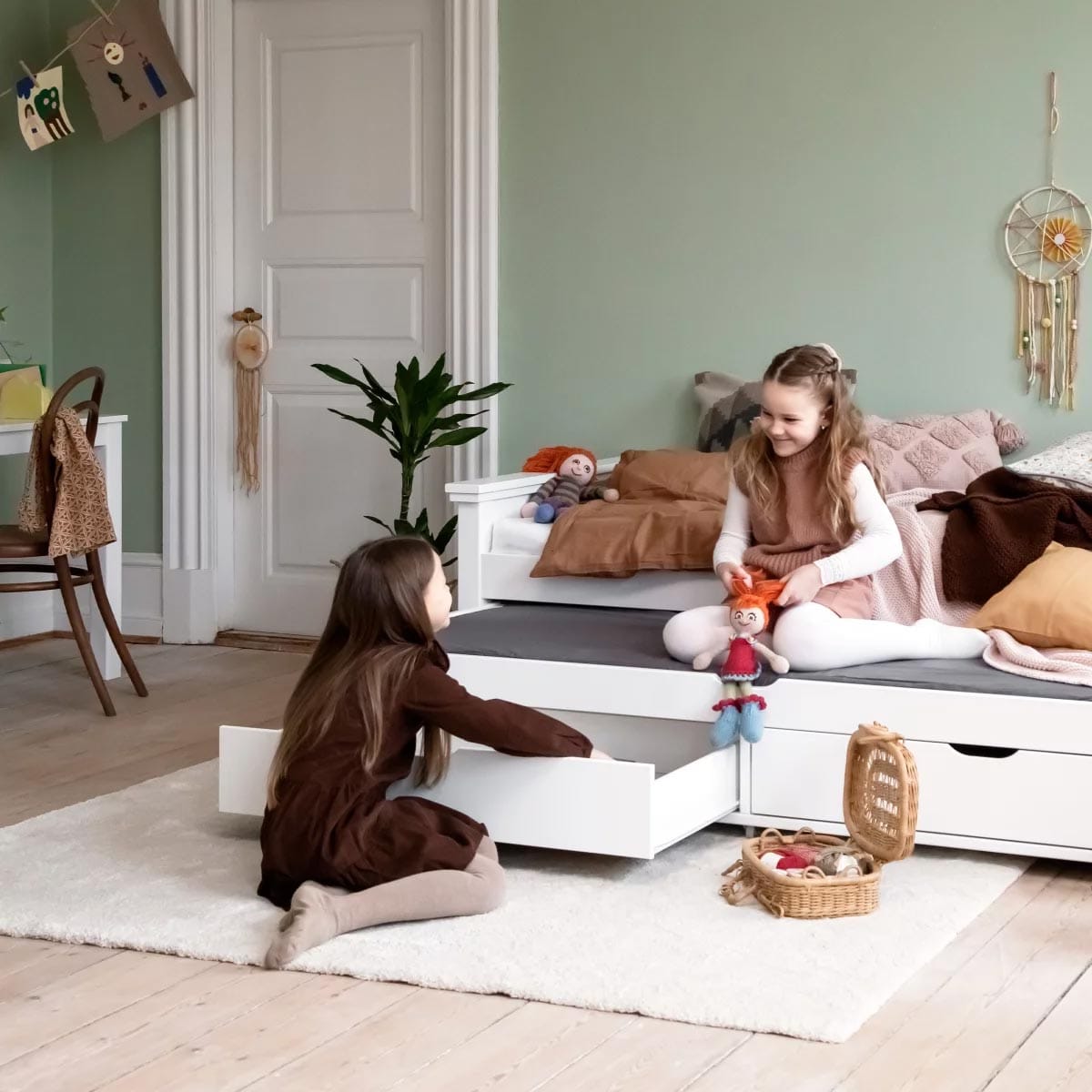 De MAJA beduiteinden zijn er in drie hippe hoogtes: Laag – 48 cm, Medium – 64 cm, en Hoog – 90 cm. En die accessoires voor de Deluxe? Nou, die zijn gewoon slim uitgekozen en perfect om die ruimte onder het bed goed te benutten. Check bijvoorbeeld dat handige uitschuifbed – ideaal als extra stapelbed of voor die extra opbergruimte.