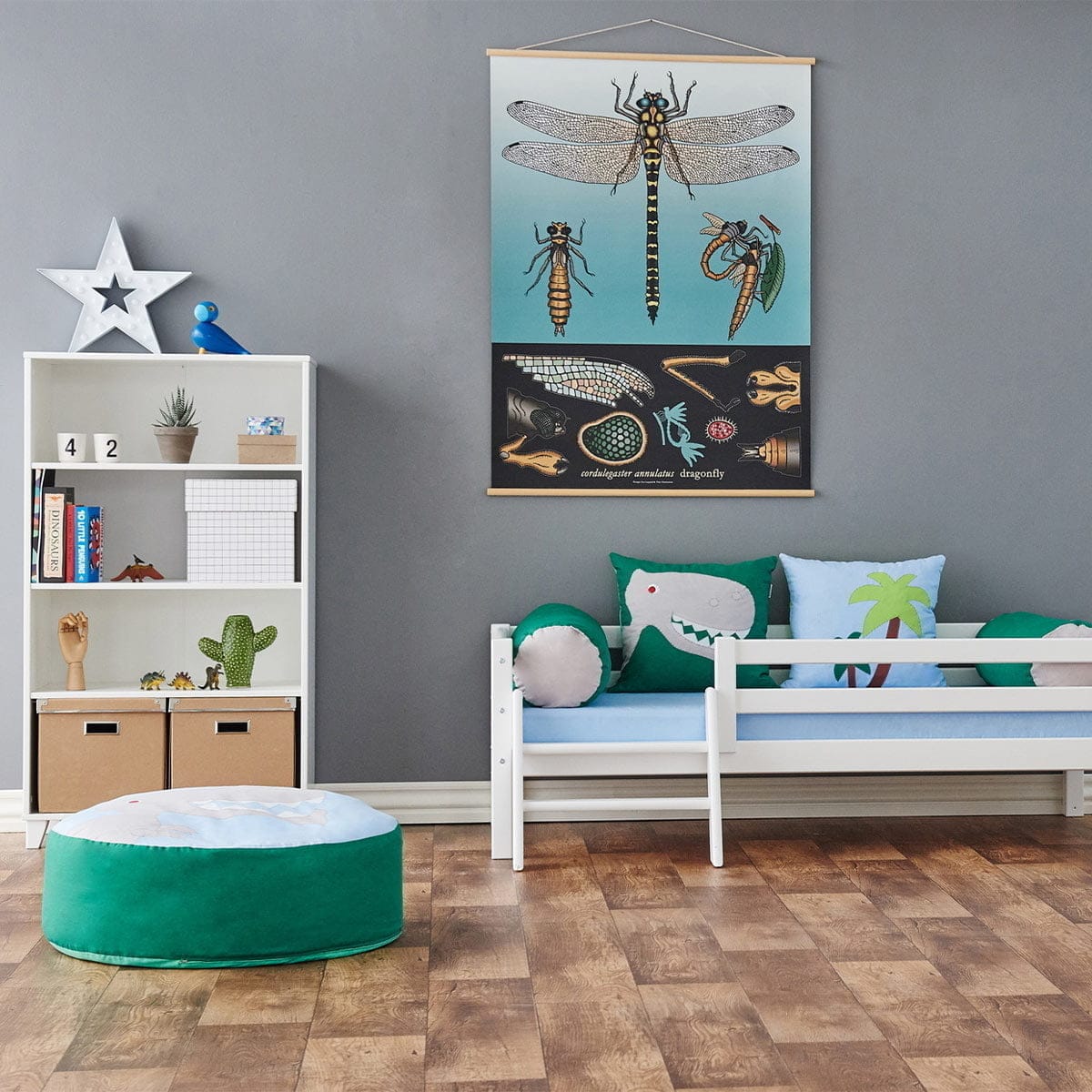 De PETER boekenplank van Hoppekids is een ruime en handige boekenkast met drie brede planken, speciaal ontworpen om ouders te helpen bij het organiseren van de spullen van hun kinderen. Dankzij de verstelbare positie van twee van de planken, kun je eenvoudig de indeling aanpassen aan de behoeften van je kind, en biedt het voldoende ruimte voor boeken, speelgoed en andere waardevolle bezittingen.