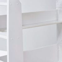 Het bed is gemaakt van duurzaam MDF, waardoor het een stevige en betrouwbare constructie heeft die stabiliteit en veiligheid biedt voor beide slaapplaatsen. Het robuuste ontwerp is bestand tegen dagelijks gebruik en gaat jarenlang mee.