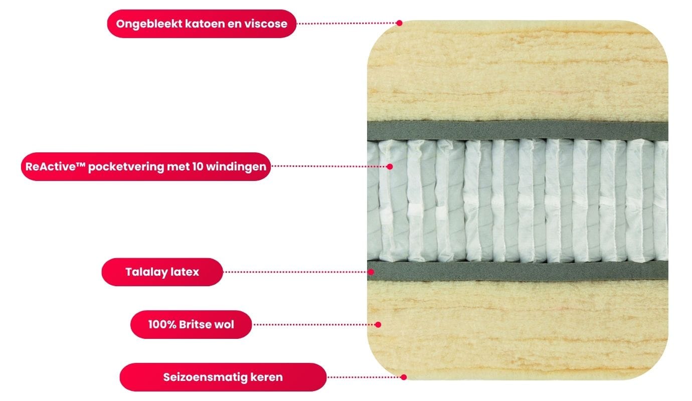 100% Britse wol en Talalay natuurlatex