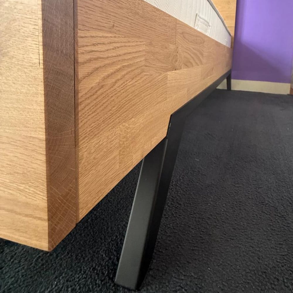 Het Oak & Steel Diamant Royal bed is een robuust en elegant designbed waarin je elke nacht slaapt als een vorst. De combinatie van een massief eikenhouten frame in grijs eiken en de zwarte metalen Scandinavische poten zorgt voor een tijdloze en stijlvolle uitstraling. Met zijn strakke lijnen en hoekige afwerking past dit bed perfect in zowel een moderne als landelijke slaapkamer.