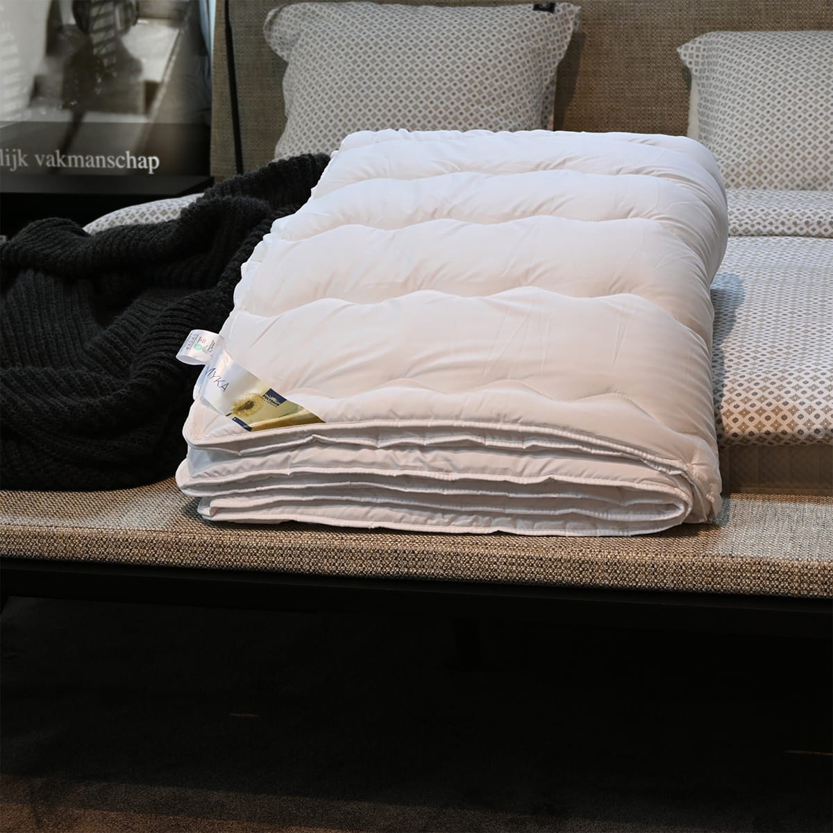 Het Polydaun Myka 4-seizoenen dekbed is een veelzijdig en duurzaam dekbed dat het hele jaar door comfort biedt. Dankzij de twee afzonderlijke delen – een lichter zomerdeel en een warmer herfst-/lentedeel – kun je eenvoudig de juiste warmte kiezen. In de winter klik je beide lagen aan elkaar voor extra behaaglijkheid.