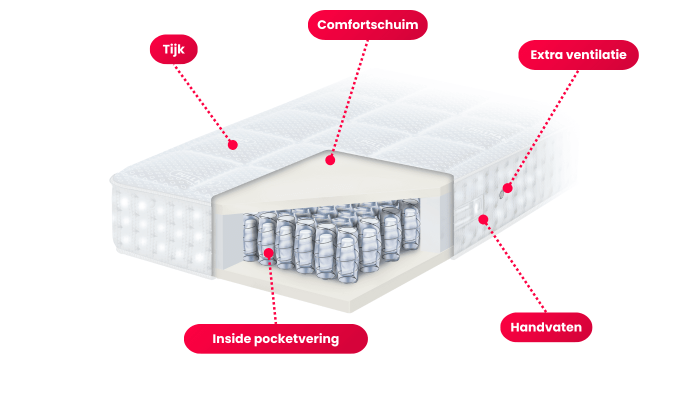 | Kern specificatie | Pocketvering met koudschuim afdeklaag |