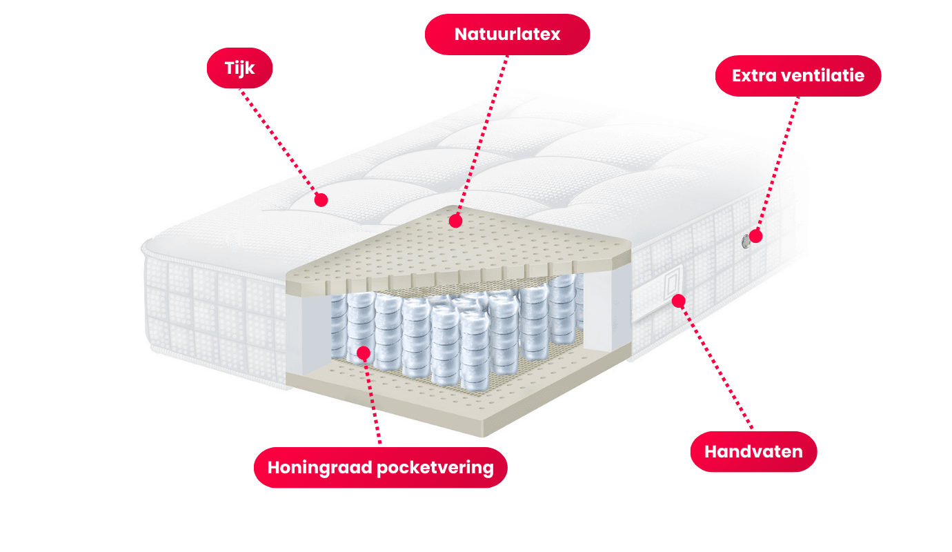Kern specificatiePocketvering met natuurlatex afdeklaag