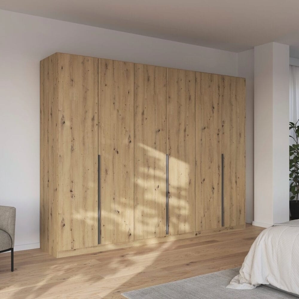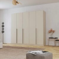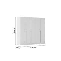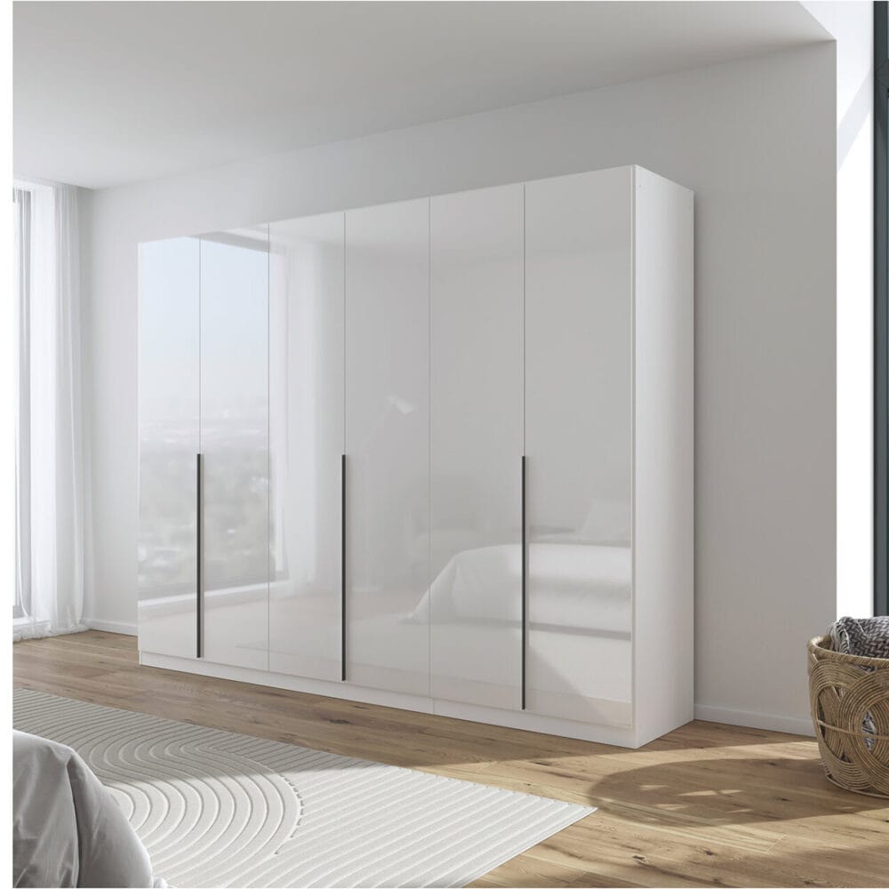 De Rauch Alabama draaideurkast van 226 cm breed, 229 cm hoog en 54 cm diep is een perfecte combinatie van ruime opbergmogelijkheden, strak design en Duitse degelijkheid. Met vijf draaideuren en een praktisch ingedeeld interieur biedt deze kast volop plek voor kleding, beddengoed en accessoires, terwijl de extra hoogte zorgt voor nóg meer bergruimte tot bijna aan het plafond.