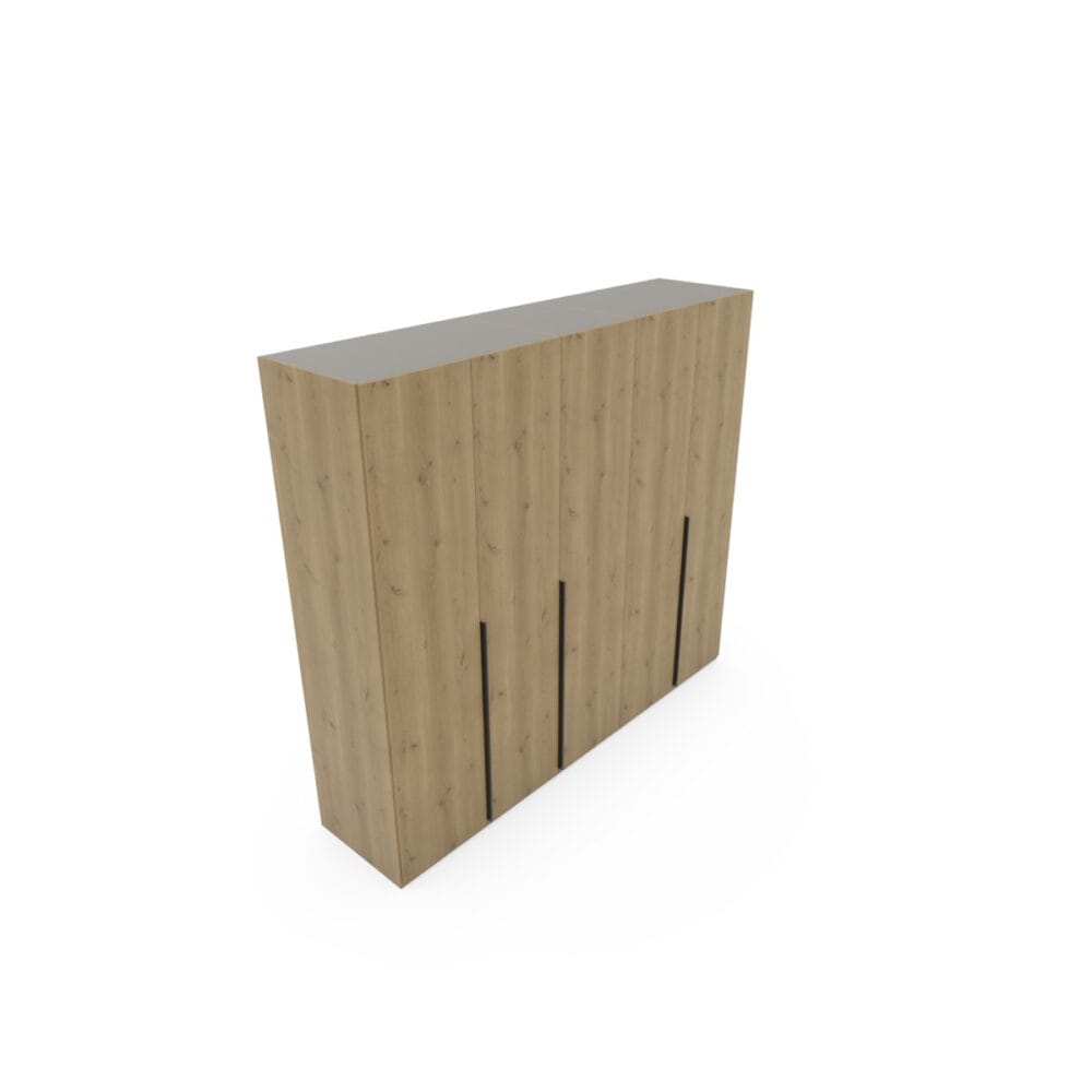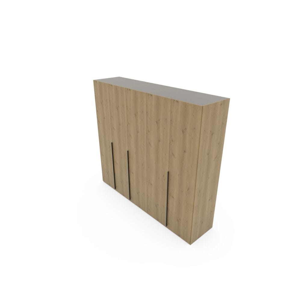 Met een breedte van 250 cm en een standaard diepte van 60 cm biedt deze kast volop opbergmogelijkheden. Achter elke deur bevindt zich een eigen compartiment – ideaal voor het verdelen van kleding per persoon, seizoen of type. De kast is verkrijgbaar in één hoogtevariant: