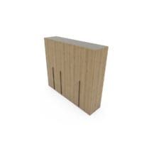 De draaideurkast is uitgerust met slanke verticale handgrepen die niet alleen functioneel zijn, maar ook bijdragen aan de strakke uitstraling van de kast. Standaard worden de handgrepen geleverd in de kleur van de gekozen kastkleur, zodat ze subtiel opgaan in het geheel. Een uitzondering vormt het ast eiken decor – hierbij zijn de grepen uitgevoerd in stijlvol zwart, wat zorgt voor een modern contrast en een extra accent op het natuurlijke houtdecor.