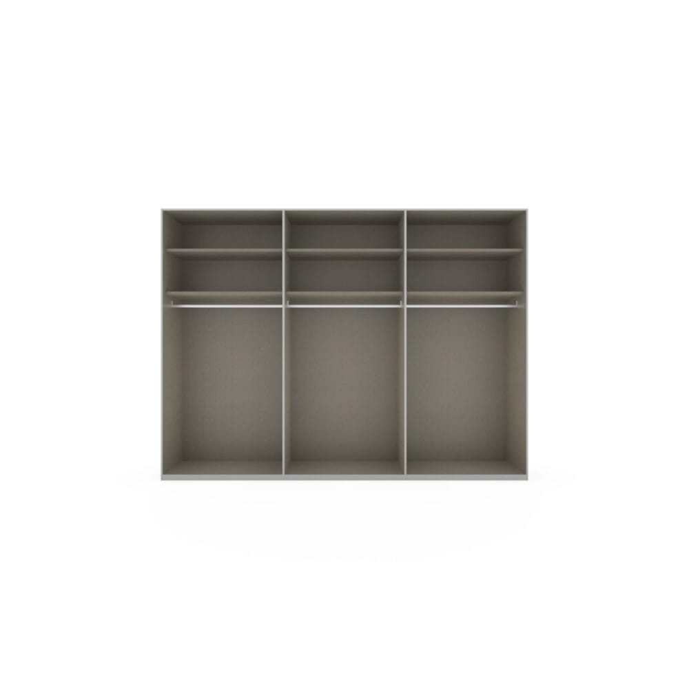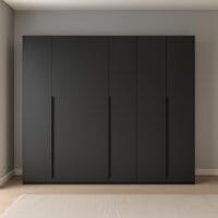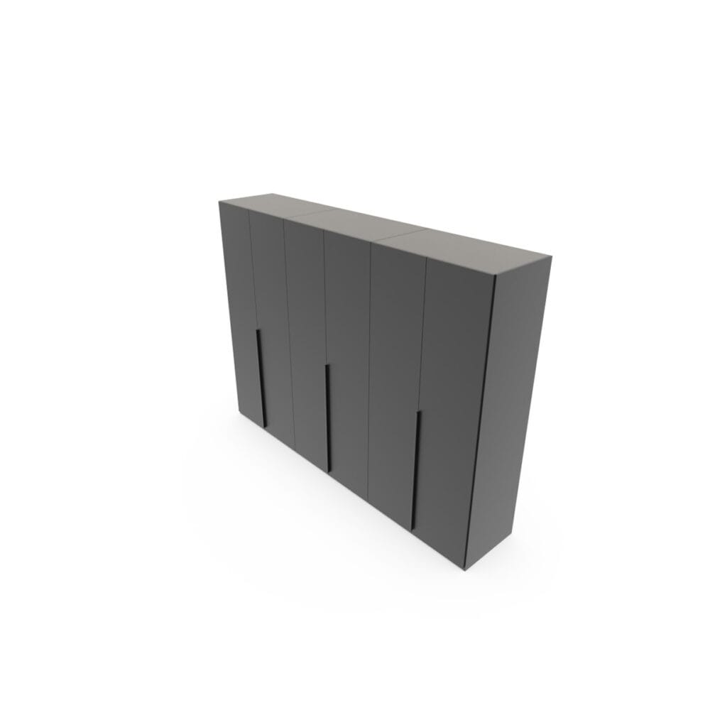 Met een indrukwekkende breedte van 300 cm en een standaard diepte van 60 cm biedt deze kast zes afzonderlijke compartimenten – perfect voor het scheiden van kleding per persoon of type. De kast is verkrijgbaar in één hoogte: