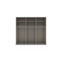 Achter de drie schuifdeuren bevindt zich een overzichtelijke indeling met legplanken en kledingroedes in elk compartiment. Ideaal voor zowel hangkleding als gevouwen kledingstukken. Wil je het interieur uitbreiden met extra lades, verlichting of indelingsaccessoires? Dat is mogelijk op aanvraag.