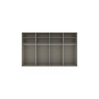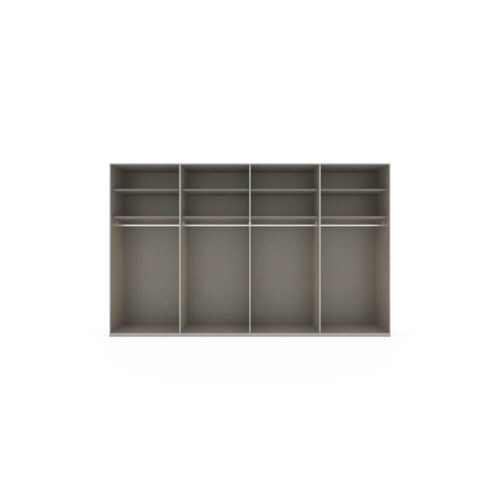 Met een royale breedte van 360 cm en een standaard diepte van 60 cm beschikt deze kast over vier volwaardige compartimenten, elk met een eigen indeling. Perfect voor het organiseren van een grote garderobe, het verdelen van ruimte per persoon of het netjes opbergen van kleding, accessoires en beddengoed. Elk compartiment is standaard voorzien van legplanken en een kledingroede.