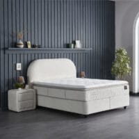 Bij elk formaat vormt het afgeronde hoofdbord een rustgevend geheel dat naadloos aansluit bij een Japandi-interieur.