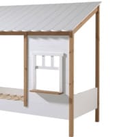 Betreed het bedhuis met wit dak en gevel van Vipack, een charmant en veelzijdig element voor de kinderkamer. Met afmetingen van 90×200 cm en vervaardigd uit massief grenenhout en MDF, biedt dit bed duurzaamheid met een speels ontwerp.
