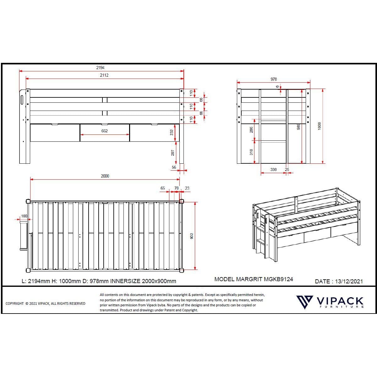 - Bedden van Poldimar, Hoppekids en Vipack worden gratis geleverd, maar niet gemonteerd.